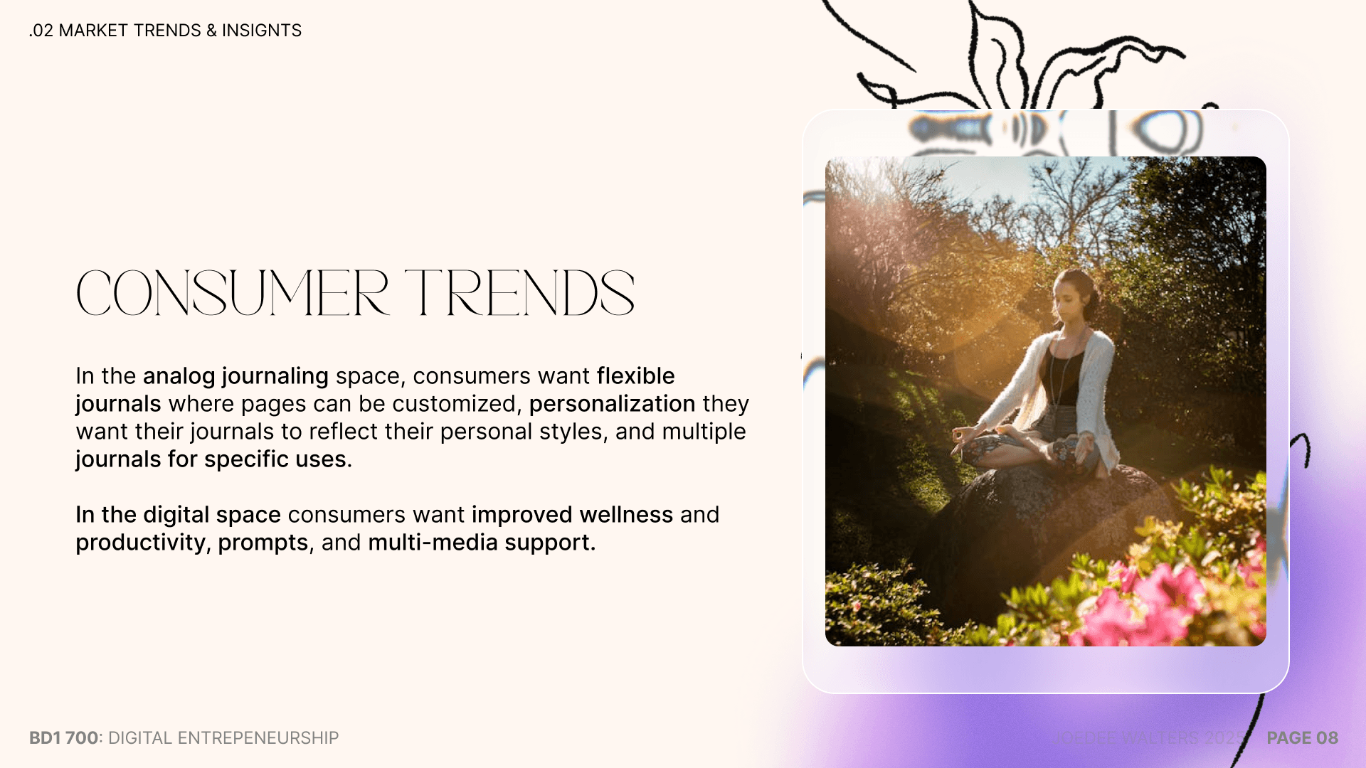 A slide/pitch deck perfect for a wellness brand. It offers structure while remaining aesthetically pleasing and calming.