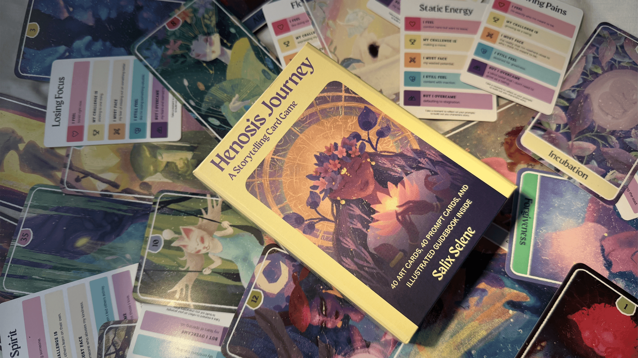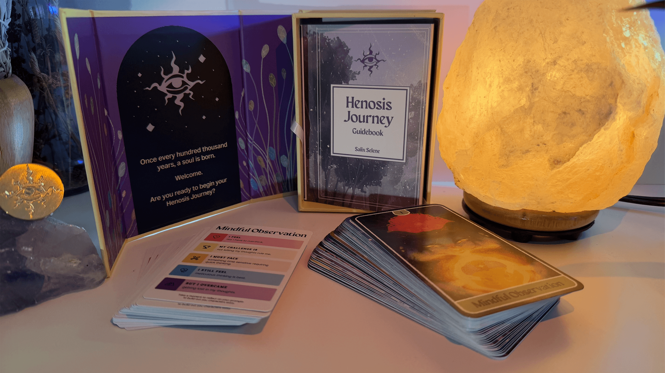 Henosis Joureny is the first product line produced for Salix Selene Studio. The studio is built on values of making mental wellness and personal development accessible to all through the power of games.