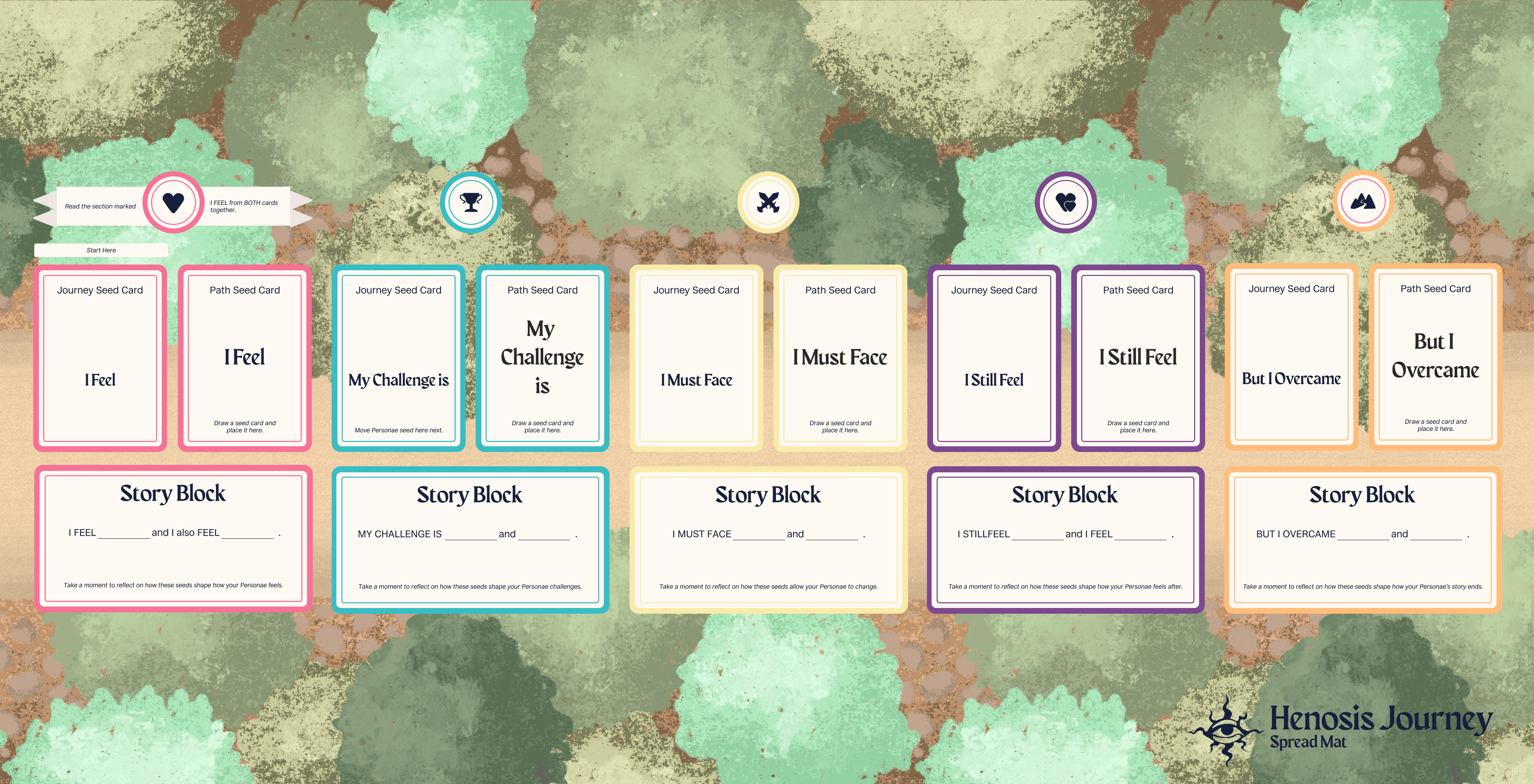 To aid self reflection, the card game revolves around characters of which players embody to then go on an emotional journey with. This journey explores feelings, challenges, fears, and more, ending with a reflection of how the journey shapes their character.