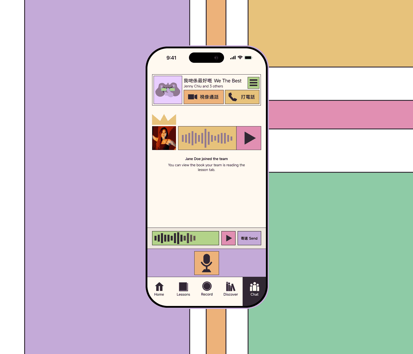 Converse with peers in voice-only threads and practice pronunciation without pressure.