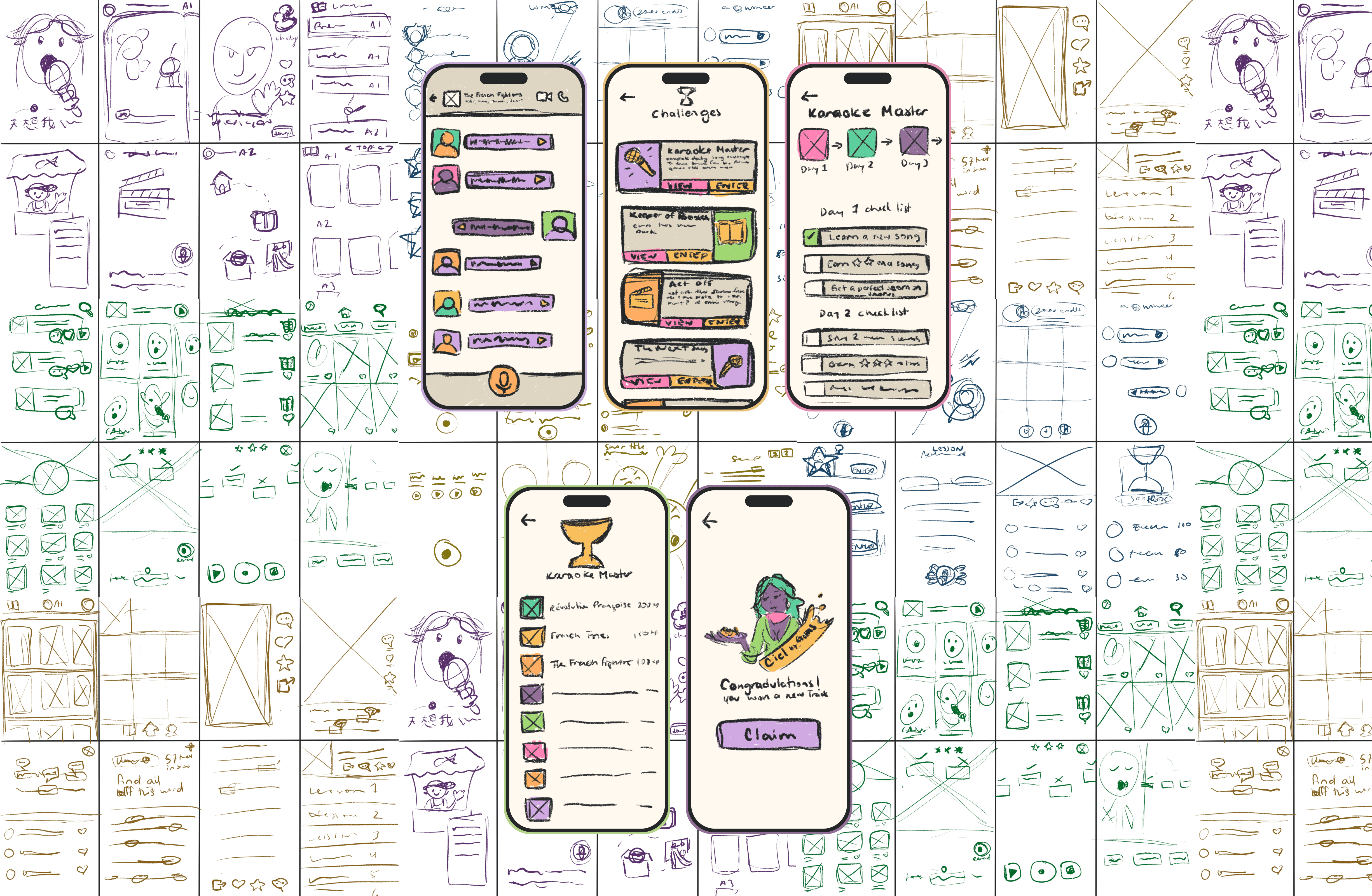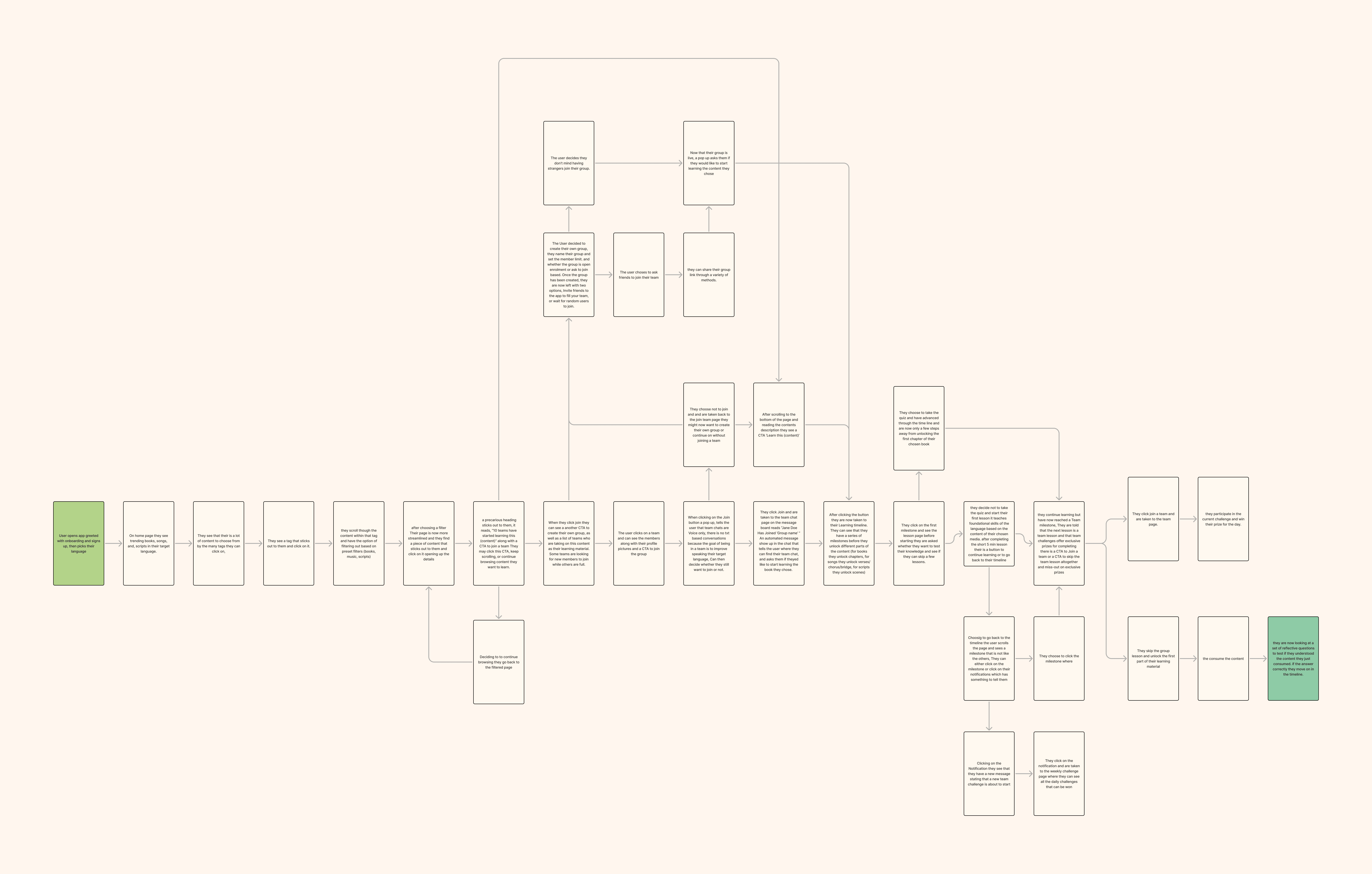 Built a user flow showing the emotional arc from new user to fluent participant. Key pain points informed onboarding and reward mechanics.