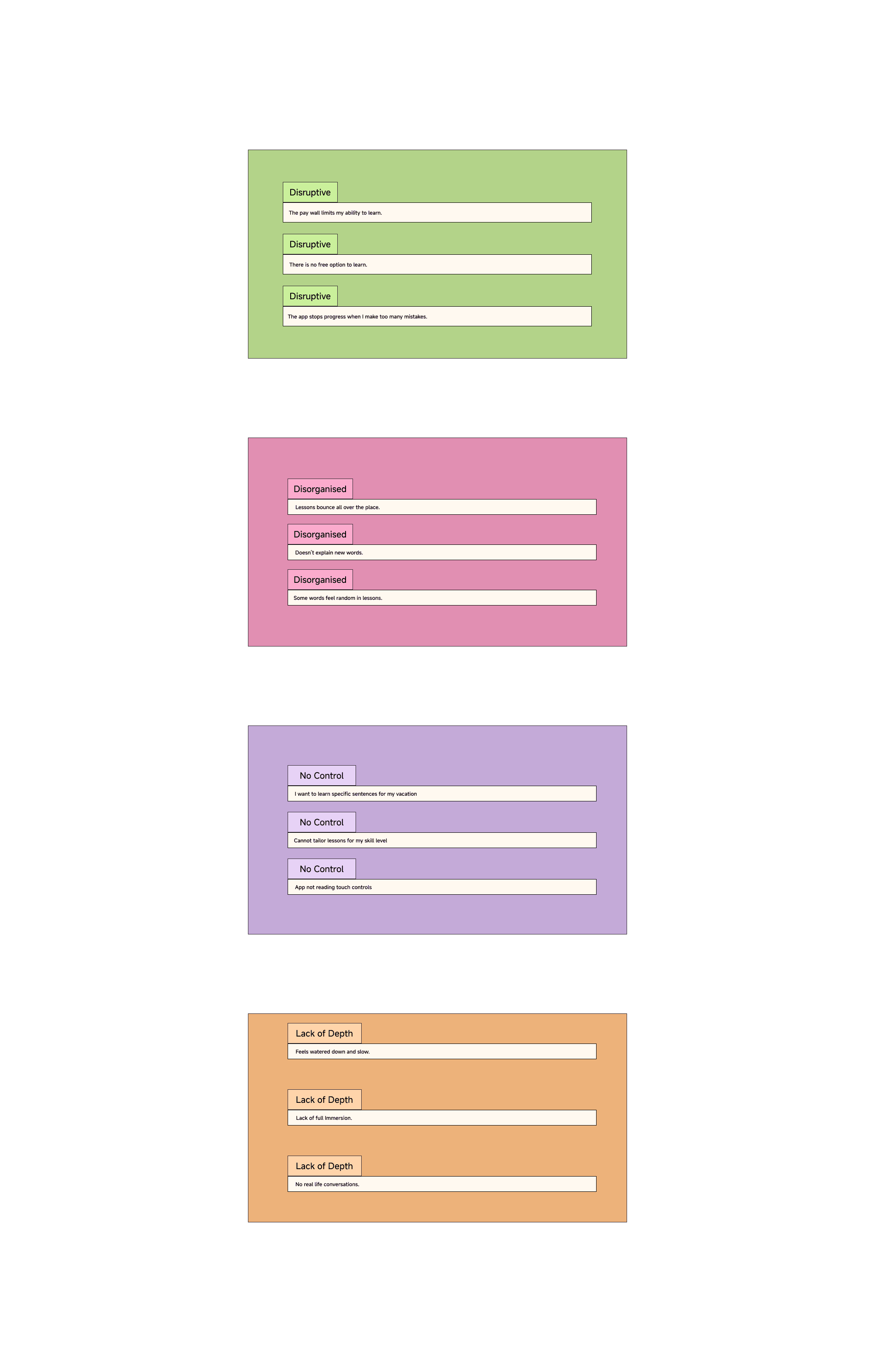 As a learner of Cantonese, I documented frustrations and dropped app usage habits to identify triggers of disengagement.