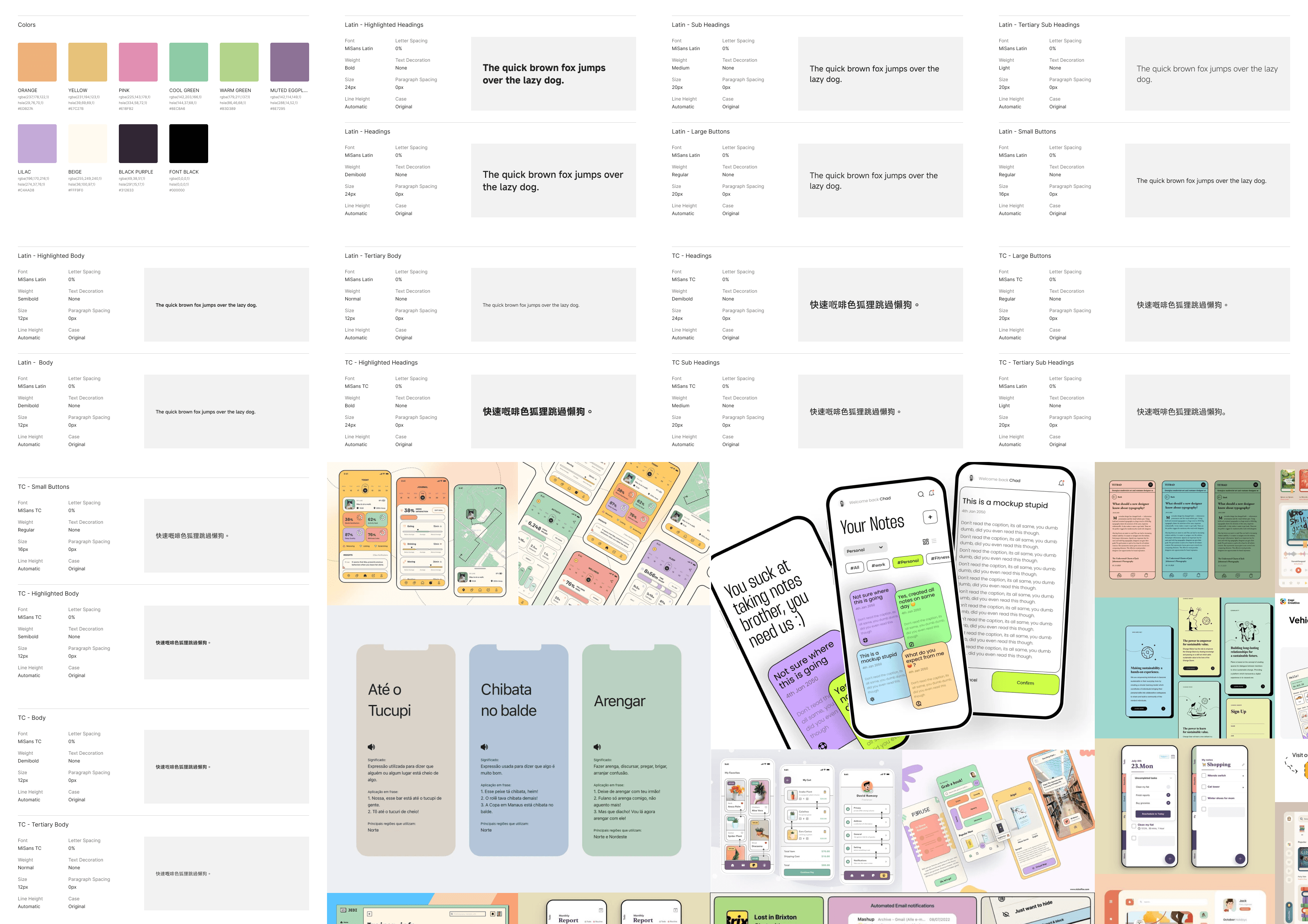 A mood board and color guide set the tone—modern, calming, and global. Typography supported multilingual script display.