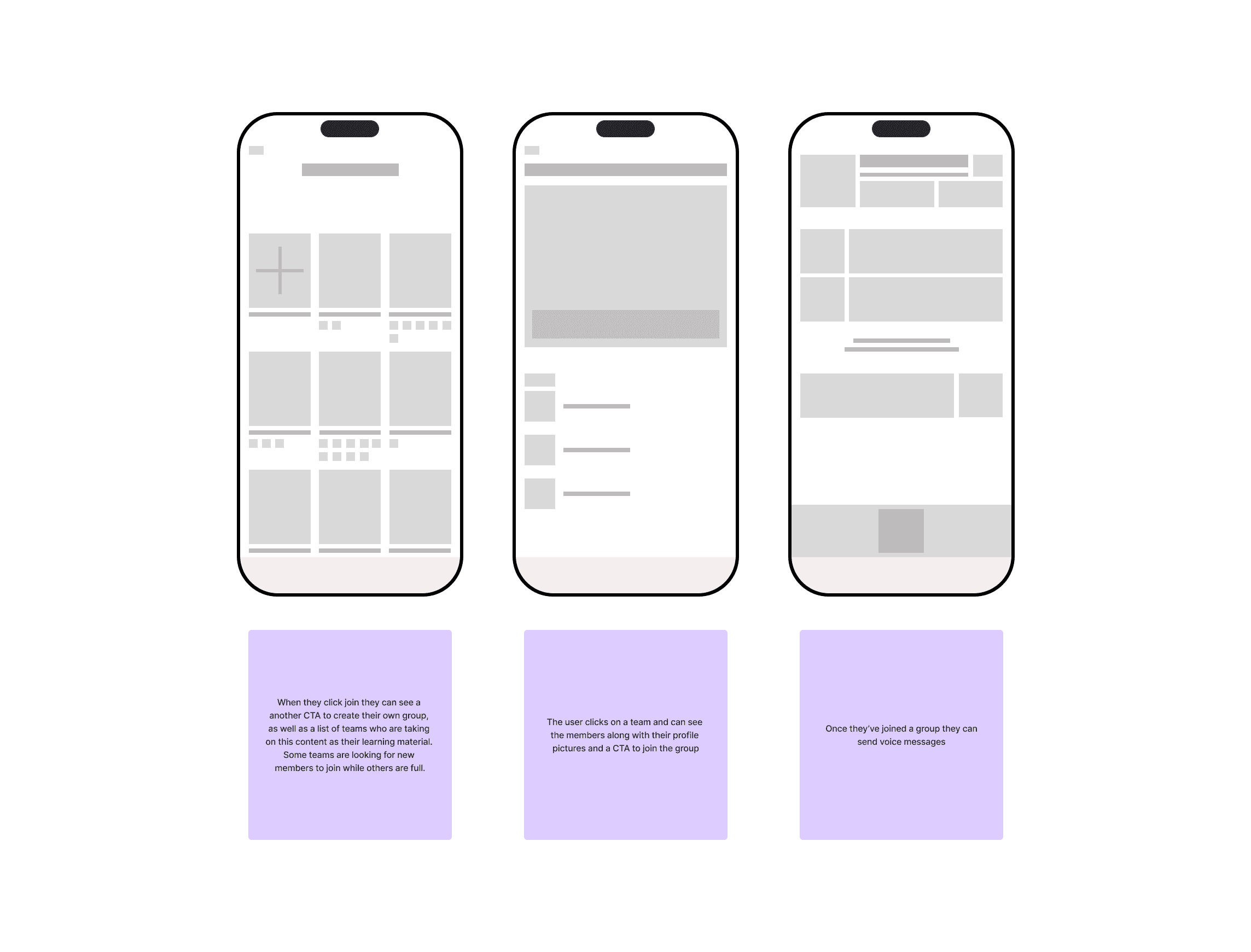 Designed group pages with voice chat, post sharing, and collaborative missions. Inspired by Discord and Reddit.