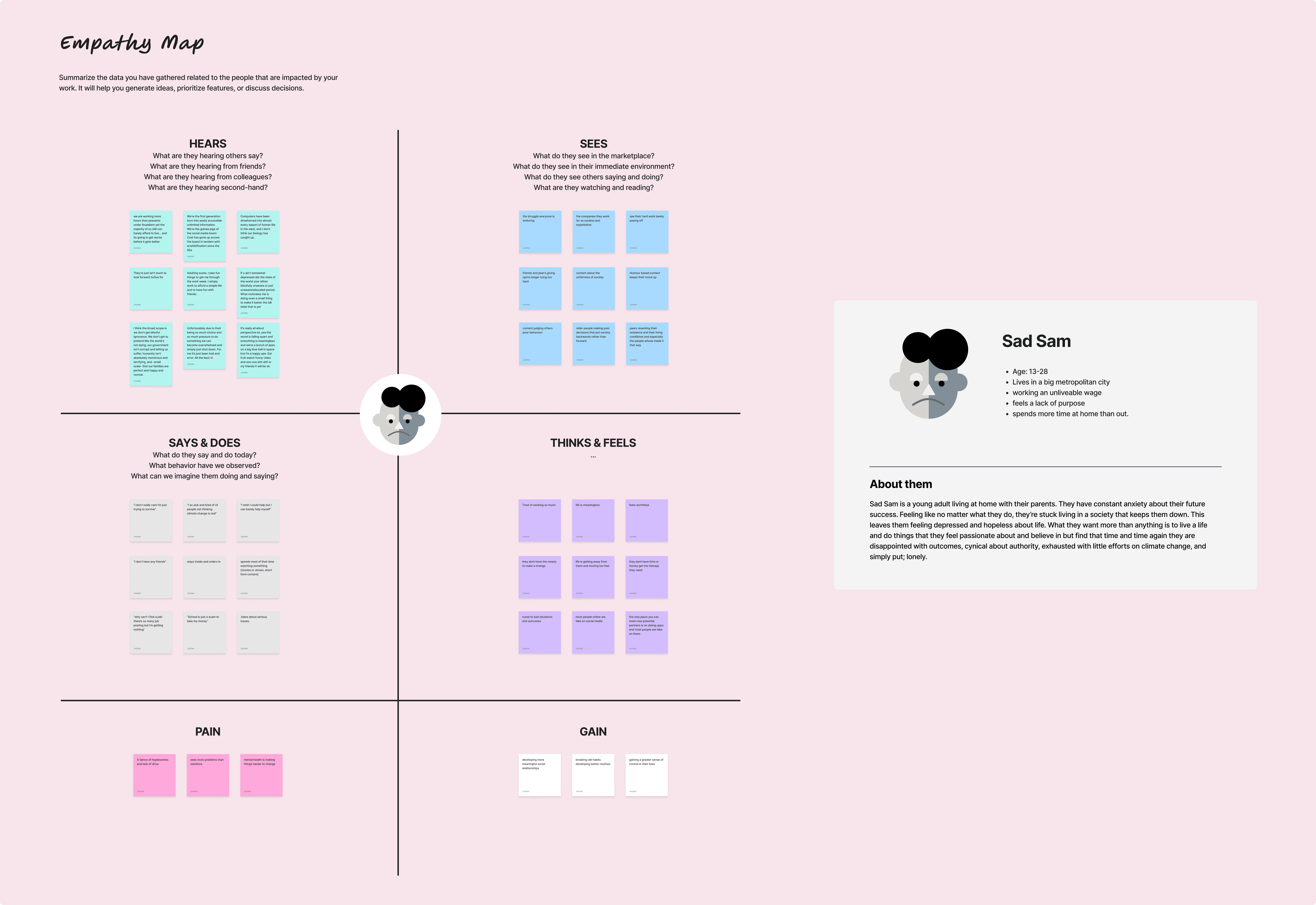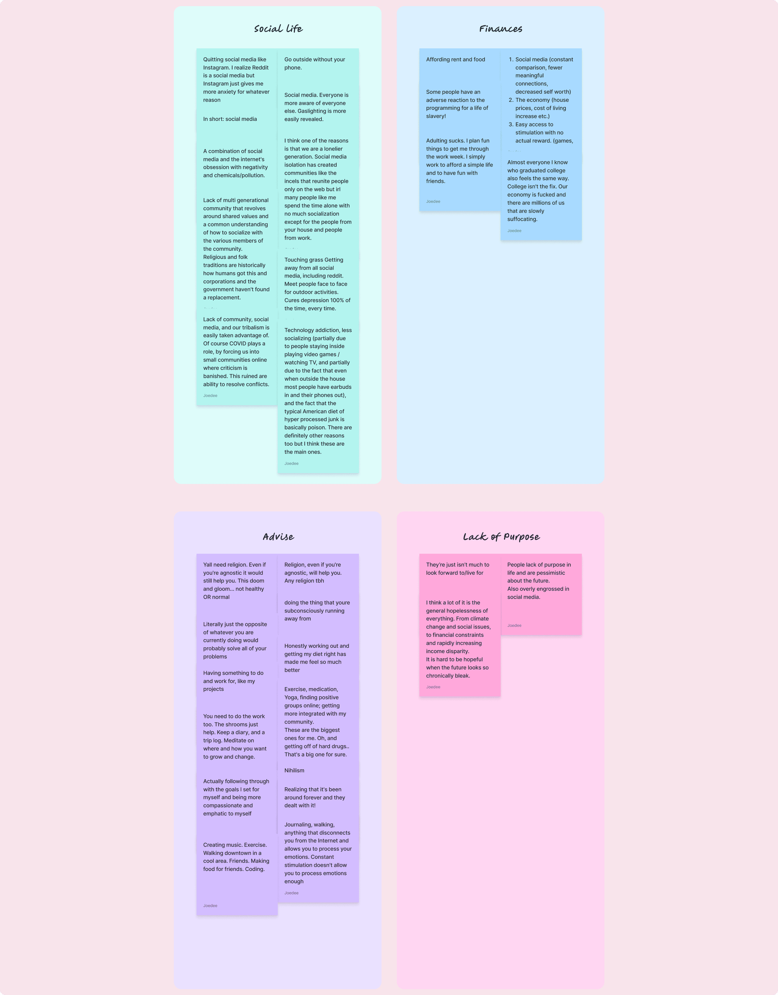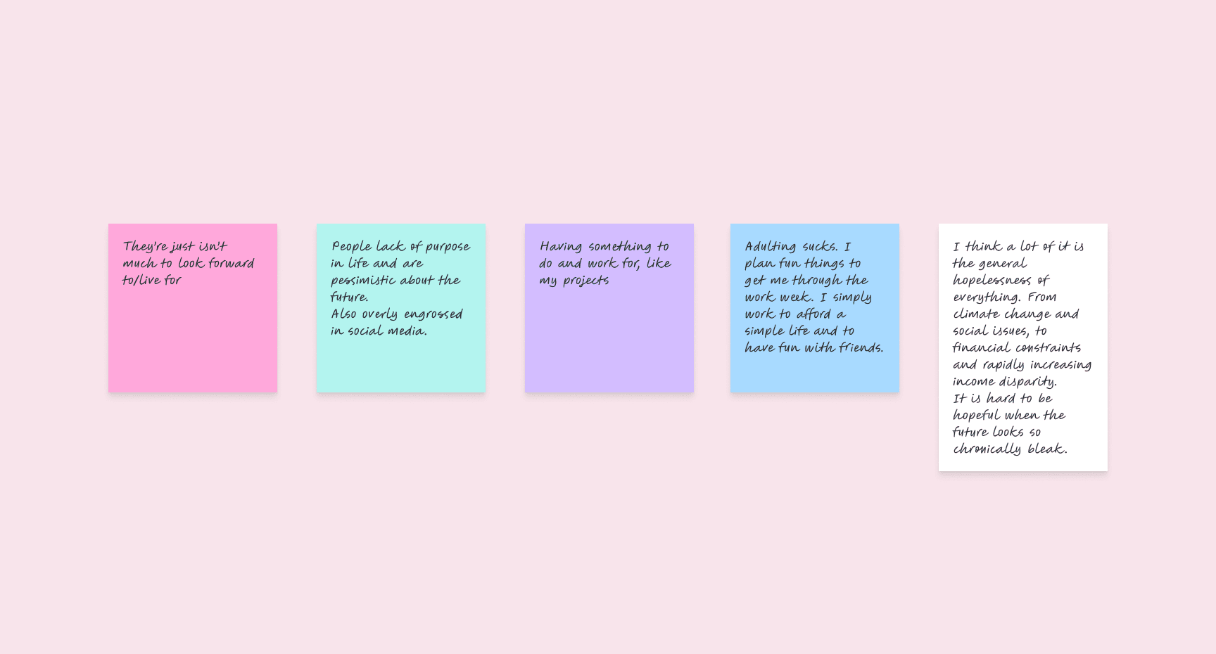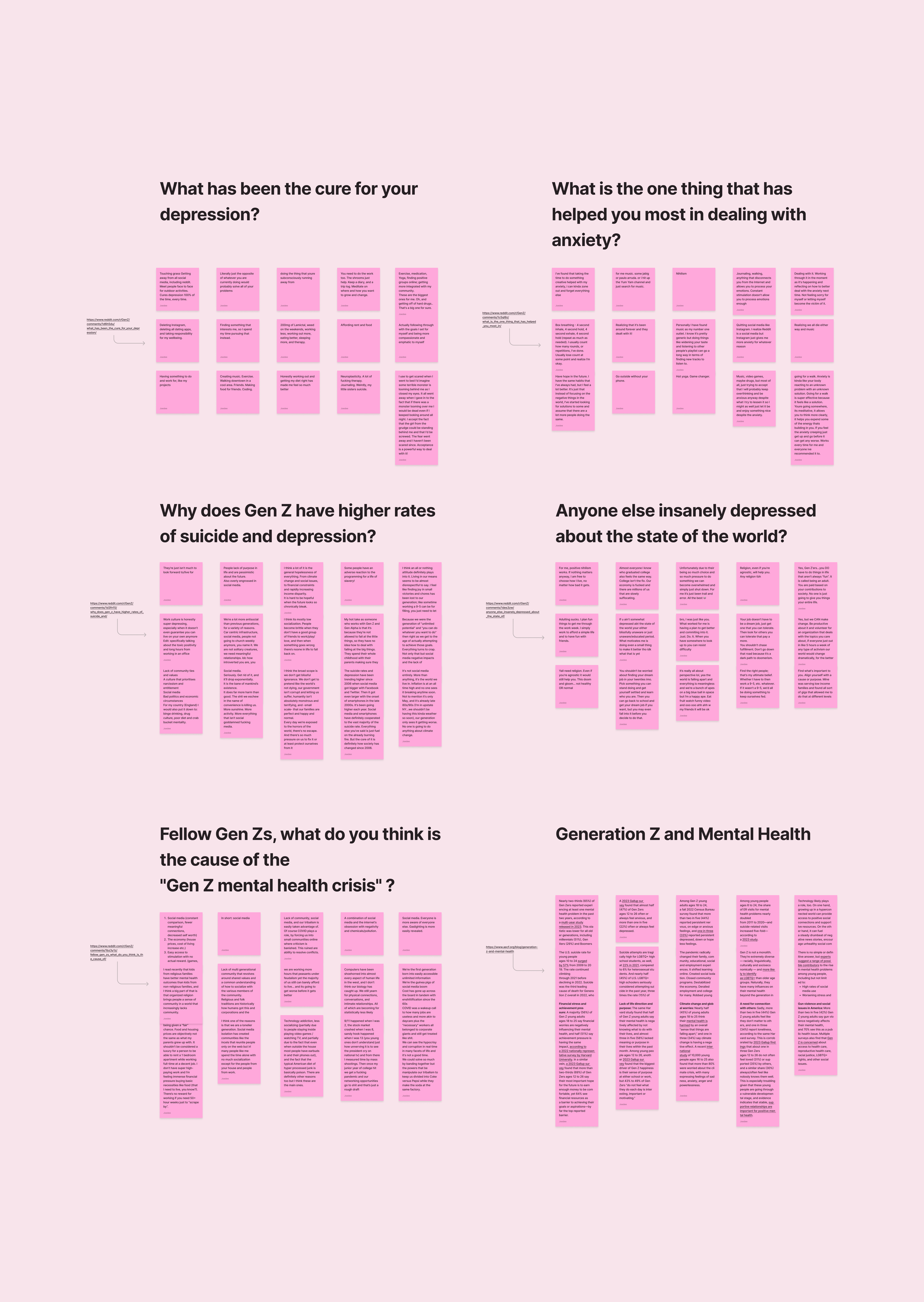 Clustered pain points into themes: emotional exhaustion, resistance to structure, love of customisation, visual self-expression.