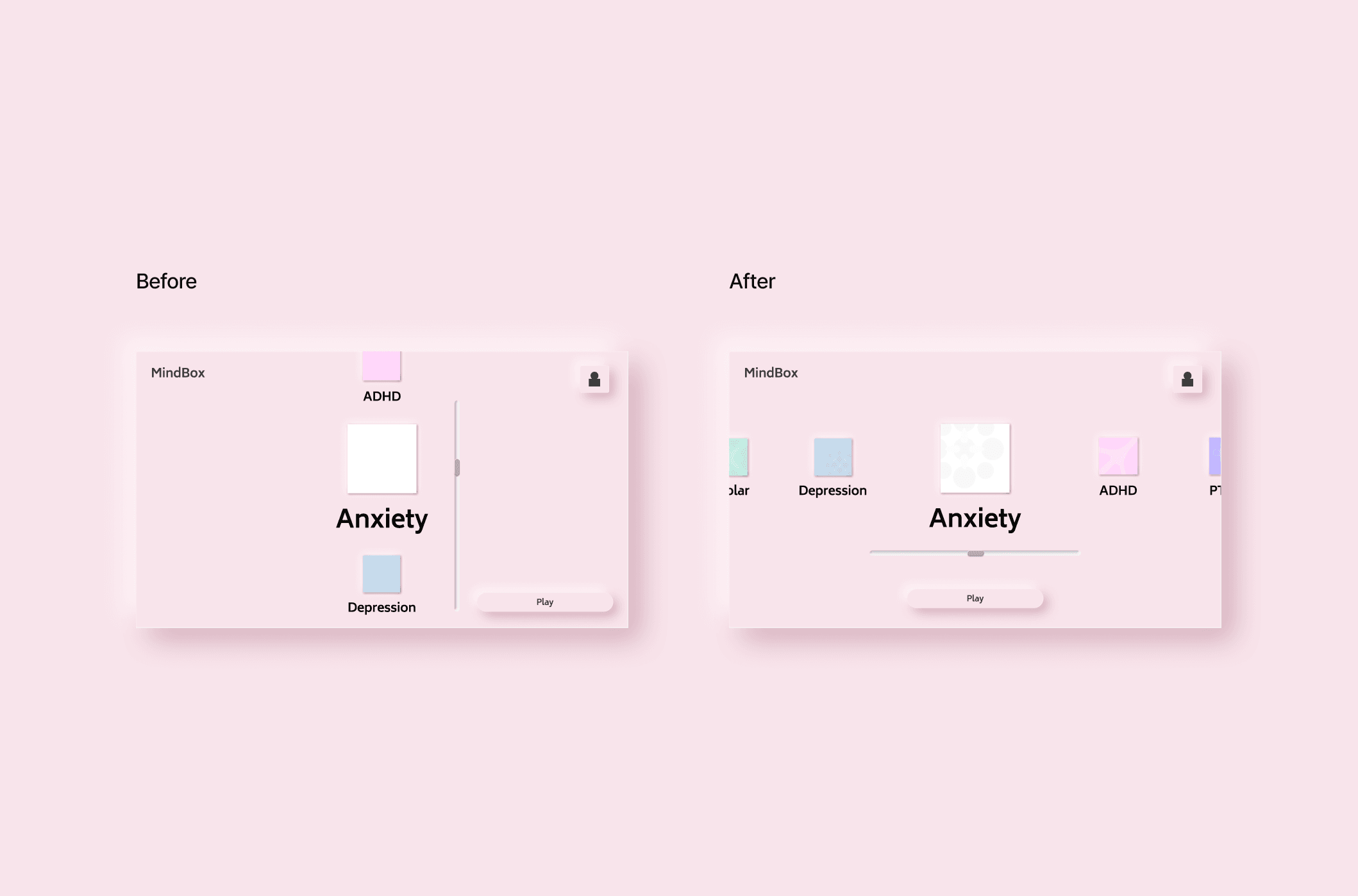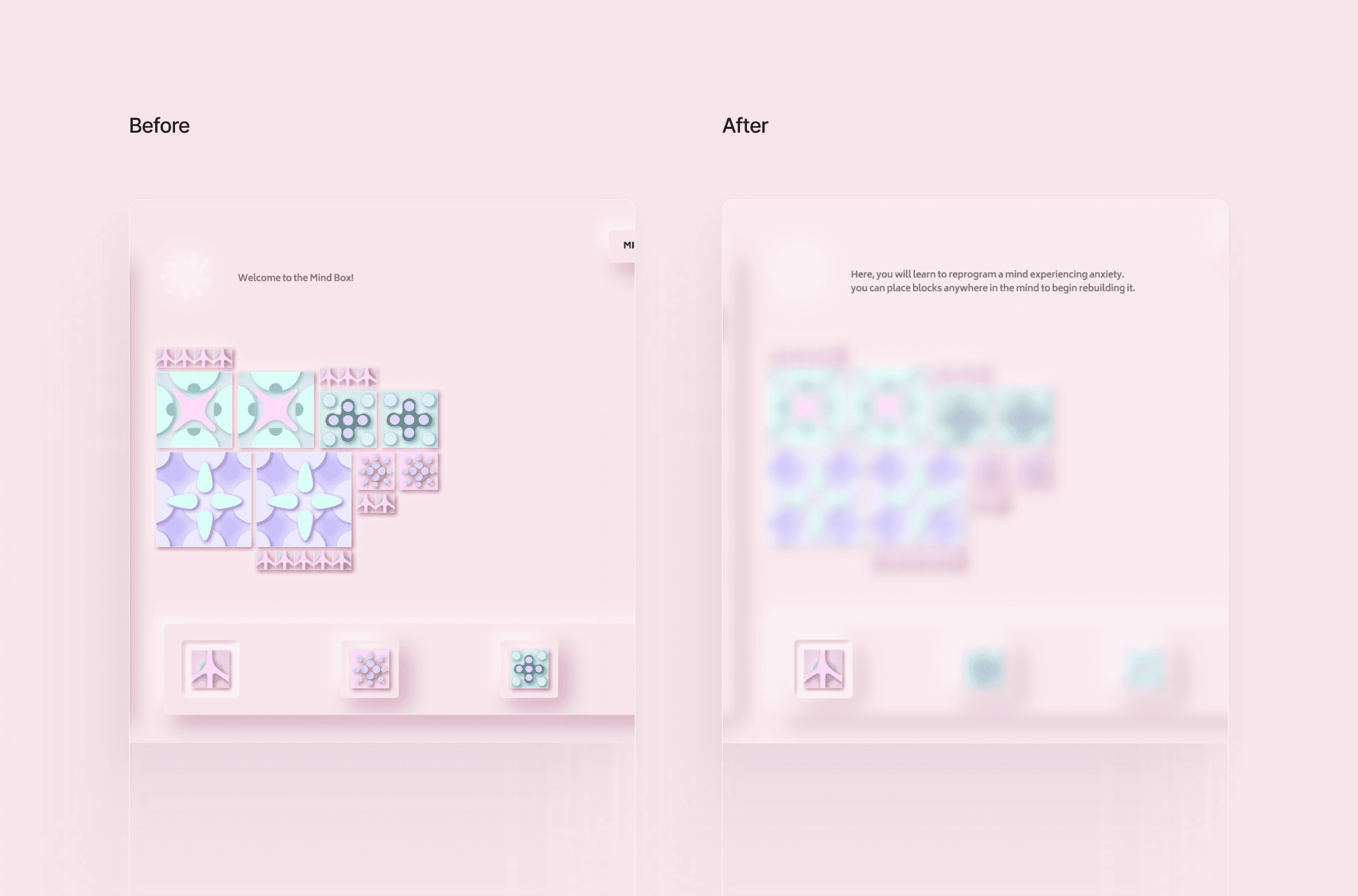 Gen Z struggles with increasing emotional apathy and burnout, often due to mental health systems that feel cold, clinical, or inaccessible. Mindbox was created to provide a digital space where emotional healing could feel exploratory and expressive rather than diagnostic.