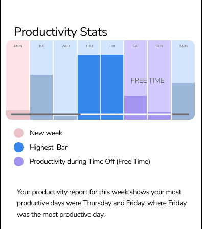 View comprhensive breakdowns of how you’ve spent time over the week, month, or year.