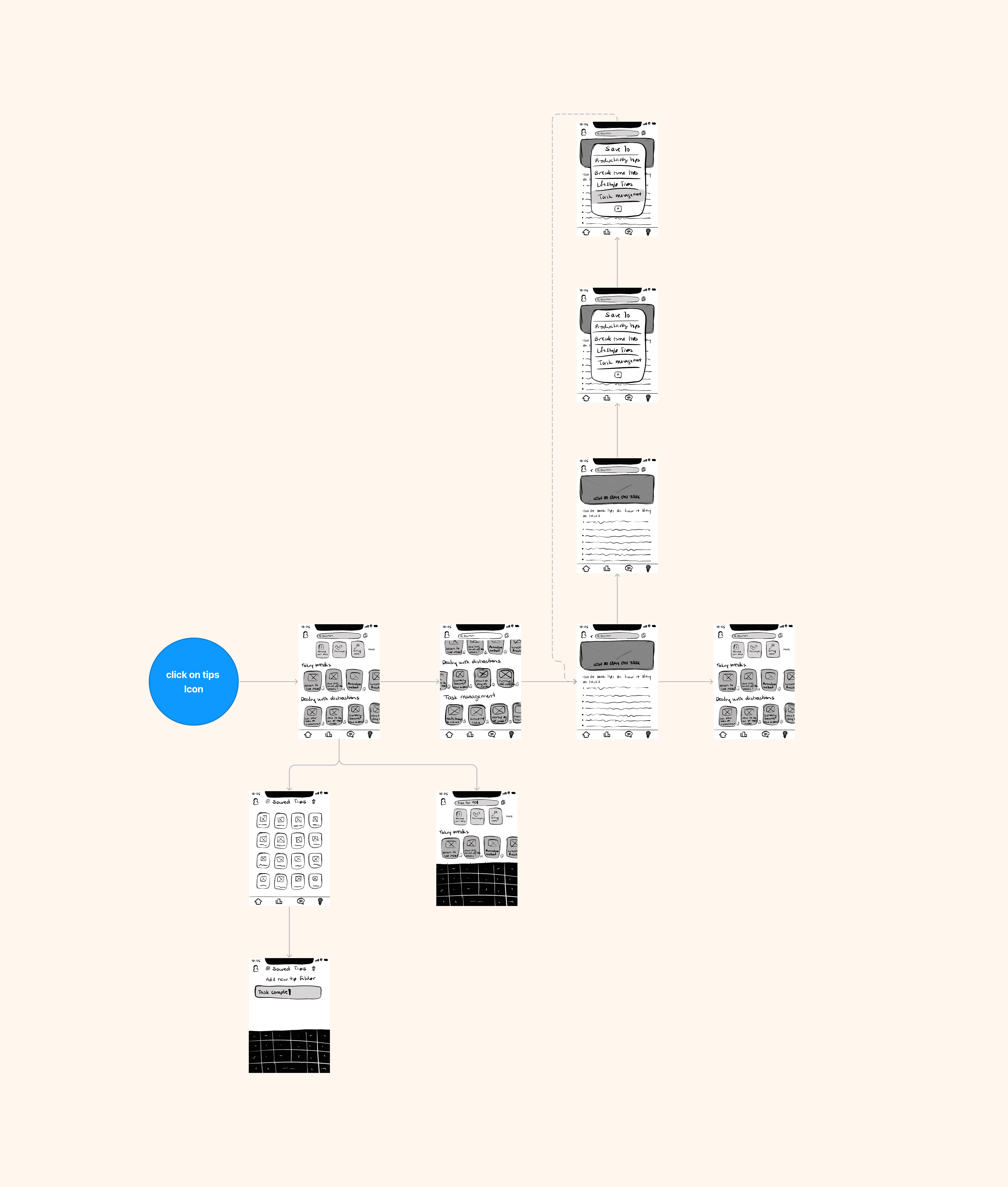 Before building screens, we mapped out flows with quick sketches to visualize structure and hierarchy.